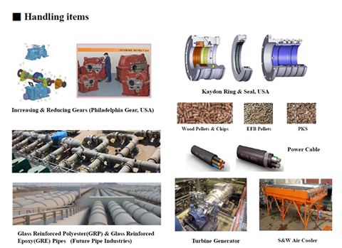 主に日本市場・韓国市場にあるバイオマス発電所・大型火力発電所に向けて天然資源販売(木質ペレット・木質チップ・石炭・バイオ コール